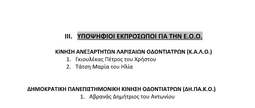 Επίσης στο επισυναπτόμενο έγγραφο θα βρείτε τα ονόματα των υποψηφίων ανά επιτροπή.